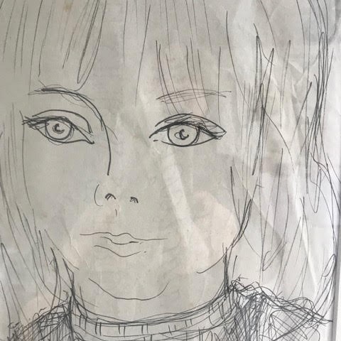 Portrait d’enfance réalisé au trait sur une nappe en papier par le peintre et décorateur Jean Saussac dit « Le Shérif » maire communiste d’Antraigues-sur-Volane.